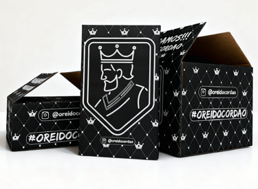 Utilizamos materiais de alta qualidade, como papelão capa branca ou papelão pardo, e oferecemos personalização completa, impressão em toda caixa, tanto interna quanto externa, ou até mesmo uma cor por toda a caixa, chamada caixa color, que valoriza ainda mais o seu produto.